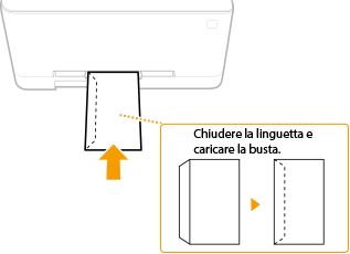Caricare le buste in modo che il bordo con la linguetta sia rivolto verso il lato sinistro, come indicato nell'illustrazione. |