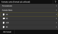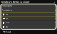 Se il formato della carta caricata non è visualizzato, selezionare <Altri formati>.