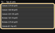 Se è necessario cambiare spesso la carta da caricare, impostare su <Libero>; questo ridurrà il numero di passaggi necessari per cambiare l'impostazione ogni volta. Tuttavia, tenere presente che questa impostazione consente alla macchina di eseguire la stampa anche in caso di mancata corrispondenza tra l'impostazione del tipo di carta nel driver della stampante e il tipo di carta effettivamente caricato nella macchina.