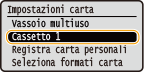 Se è necessario cambiare spesso la carta da caricare, impostare su <Libero>; questo ridurrà il numero di passaggi necessari per cambiare l'impostazione ogni volta. Tuttavia, tenere presente che questa impostazione consente alla macchina di eseguire la stampa anche in caso di mancata corrispondenza tra l'impostazione del tipo di carta nel driver della stampante e il tipo di carta effettivamente caricato nella macchina.