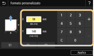 Quando si carica un formato carta personalizzato (Modello con touchpanel)