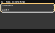 Se la stampa di un documento non è centrata o non rientra nell'intervallo stampabile, regolare la posizione di stampa. È possibile regolare la posizione di stampa per ciascuna alimentazione carta. È possibile regolare la posizione di stampa nell'intervallo da -5,0 mm a +5,0 mm con incrementi di 0,1 mm.