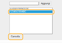 Selezionare un indirizzo MAC e fare clic su [Cancella].