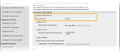 Selezionare la casella di controllo [Utilizzo IEEE 802.1X] e immettere il nome di accesso nella casella di testo [Nome accesso].