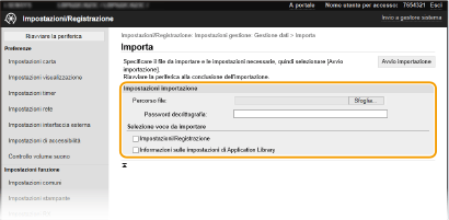 Importazione delle impostazioni
