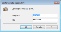 [Confermare ID reparto/PIN durante la stampa]