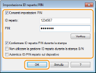 Selezionare la casella di controllo per visualizzare la finestra a comparsa [Confermare ID reparto/PIN] ogni volta che si invia un lavoro da un computer.