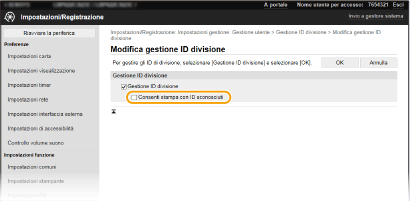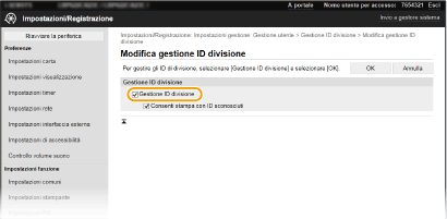 Selezionare la casella di controllo [Gestione ID divisione].