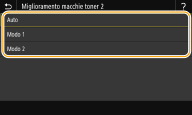 Se è stato impostato <Modo 1>, le stampe potrebbero essere sbiadite. Se è stato impostato <Modo 2>, le stampe potrebbero essere arricciate. |