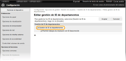 Seleccione la casilla de verificación [Gestión de ID de departamentos].