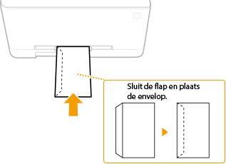 Laad enveloppen van het formaat Monarch, COM10, DL of ISO-C5 met de lange kant aan weerszijden en met de kant zonder lijm (de voorzijde) naar boven. U kunt niet afdrukken op de achterzijde van enveloppen.