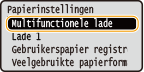 U kunt standaard-papierinstellingen opslaan voor de multifunctionele lade. Hierdoor hoeft u niet steeds instellingen in te voeren wanneer u altijd hetzelfde papier gebruikt in de multifunctionele lade.