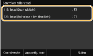<Met <Controleservice> kunt u communicatie inschakelen met een externe bewakingsserver. Dit item maakt het mogelijk dat informatie over het apparaat regelmatig naar de externe bewakingsserver wordt verzonden die met het apparaat is verbonden. Met <App.config. contr.> kunt u de optionele eenheden controleren die in het apparaat zijn geïnstalleerd. |