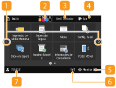 Prima para verificar o estado da impressão, para ver o histórico de utilização ou para ver as definições de rede (por exemplo, o endereço IP da máquina). Também pode verificar o estado da máquina (por exemplo, a quantidade restante de papel e a quantidade restante nos cartuchos de toner) ou a ocorrência de erros. Ecrã <Monitor de Status>