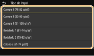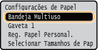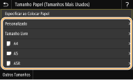 Após o registo da predefinição de papel, o ecrã de definição de papel não aparece quando o papel é colocado e é utilizada sempre a mesma definição. Se colocar um tamanho ou um tipo diferente de papel sem alterar as definições de papel, a máquina pode não imprimir corretamente. Para evitar esse problema, selecione <Especificar ao Colocar Papel> no passo 3 e depois coloque o papel.