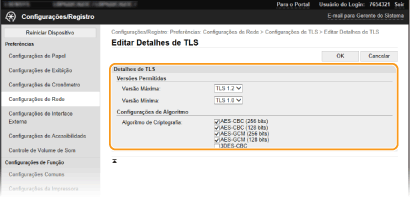 Especifique [Versão Máxima] e [Versão Mínima] do TLS.