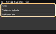 Pode utilizar <Ajuste Fino> ou <Densid. (Ajuste Fino)> para ajustar a densidade do toner de cada cor para três níveis: densidade alta, densidade média e densidade baixa.