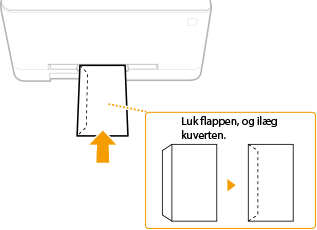 Ilæg kuverterne Monarch, COM10, DL eller ISO-C5 i stående retning (med de korte kanter mod maskinen), så siden uden lim vender opad (forside). Du kan ikke udskrive på den modsatte side af kuverter.