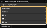 Hvis det ilagte papirformat ikke vises, skal du vælge <Andre formater>.
