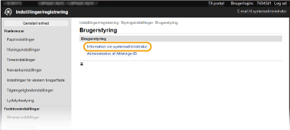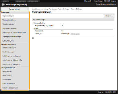 Nogle indstillinger kan kun ændres, når du er logget på i Systemadministratortilstand. Nogle indstillinger kan kræve handlinger, der er anderledes end den her beskrevne fremgangsmåde. |