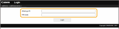 Du kan foretage alle handlingerne og indstillingerne i Brugerinterface til fjernbetjening. Angiv det relevante id i [Systemadministrator-ID] og pinkoden i [Systemadministrator-PIN].