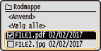 2 | Hvis der er forskellige filtyper, skal du vælge <JPEG/TIFF Filer> eller <PDF-Filer>. |