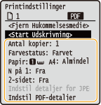 Med en PDF-fil kan du udskrive 9 eller 16 sider med billeddata på en side af et ark papir ved at bruge <N på 1> under <Indstil PDF-detaljer>. |
