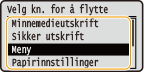 Et langt trykk på <Fl. venstre> eller <Flytt høyre> flytter den valgte knappen uavbrutt.