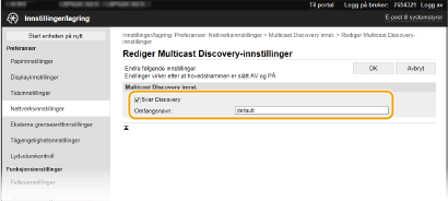 1 | Velg [Multicast Discovery innst.] [Rediger]. |