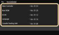 Laiteohjelmistoversion tarkistaminenVoit tarkistaa laiteohjelmistoversion laitteen käyttöpaneelista. Kun laiteohjelmisto on päivitetty, varmista, että päivitys suoritettiin oikein. Laiteohjelmistoversion tarkistaminen |