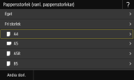 Om det påfyllda pappersformatet inte visas väljer du <Andra storl.>.