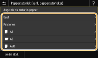Om det påfyllda pappersformatet inte visas väljer du <Andra storl.>.