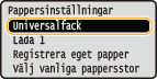 Du kan registrera standardpappersinställningar för multiutmatningsfacket. Om du registrerar standardinställningar behöver du inte ange inställningarna varje gång du fyller på samma papper i multiutmatningsfacket.