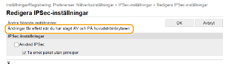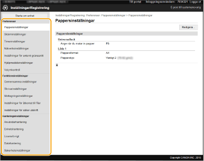 Vissa inställningar kan endast ändras när du är inloggad i systemhanteringsläge. För vissa inställningar kan andra rutiner gälla än de som beskrivs här. |