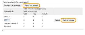 Om du vill nollställa antalet klickar du på länken under [Avdelnings-ID] och sedan klickar du på [Nollställ räknare]  [OK]. Om du vill nollställa för alla avdelnings-ID klickar du på [Rensa alla räknare]  [OK]. |