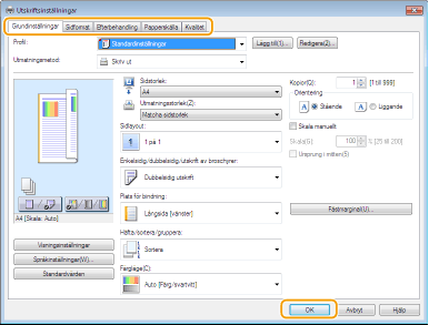 Ange de utskriftsinställningar som behövs och klicka på [OK].