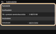Hálózati beállításokat, például a készülék IP-címét, valamint állapotokat, például a vezeték nélküli helyi hálózati kommunikáció állapotát jeleníti meg.