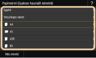 Ha regisztrálja a gyakran használt papírméreteket az <S1> és <S3> közötti gomboknál, akkor egyetlen érintéssel előhívhatja őket. Egyéni papírméret bejegyzése