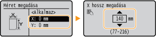 adja meg a papír szélességét ![]() ![]() <Y> adja meg a papír hosszúságát ![]() ![]()