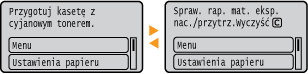 Komunikaty są wyświetlane na ekranie na przykład wtedy, kiedy skończy się papier lub kiedy upłynie okres eksploatacji zasobnika z tonerem. Więcej informacji znajduje się na stronie internetowej podręcznika w sekcji „Rozwiązywanie problemów (FAQ)”.