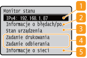 Możesz określić czy wyświetlać adres IP na ekranie <Monitor stanu> ustawiając <Wyświetl adres IP>.
