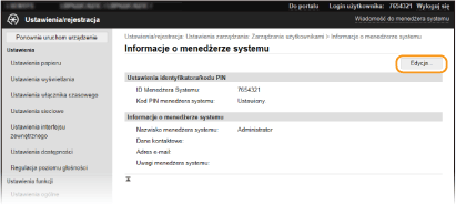 Niektóre ustawienia można zmieniać tylko po zalogowaniu się w trybie menedżera systemu.