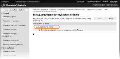 Zaznacz pole wyboru [Zarządzanie ID działu].