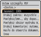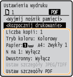 W przypadku pliku PDF można wydrukować 9 lub 16 stron danych obrazu na jednej stronie arkusza papieru, korzystając z opcji <N na 1> w obszarze <Ustaw szczegóły PDF>.