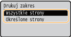 Określ zakres stron, jaki chcesz wydrukować. Wprowadź żądaną wartość w każdej pozycji <Pierwsza strona> i <Ostatnia strona> przy użyciu przycisków numerycznych, a następnie wybierz <Zastos.>.