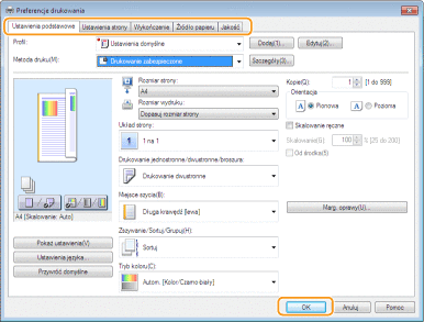 Określ ustawienia drukowania według potrzeb i kliknij przycisk [OK].