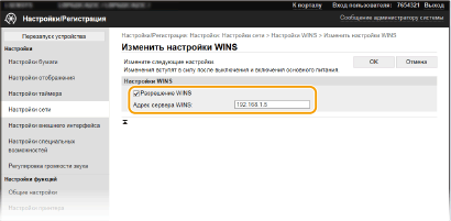 Выберите [Настройки сети]  [Настройки WINS].
