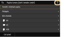 Dažos ekrānos ir pieejama poga <?>, ko varat izmantot, lai skatītu funkciju aprakstus vai informāciju par darbībām.