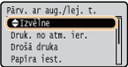 Izvēlieties <Pārv.pa kr.> vai <Pa labi>.
