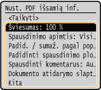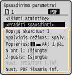 Jei naudojate PDF failą, vienoje popieriaus lapo pusėje galite spausdinti nuo 9 iki 16 puslapių atvaizdų duomenų, naudodami <N ant 1> dalyje <Nust. PDF išsamią inf.>.